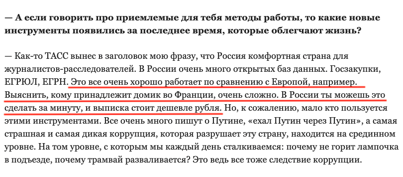 А во Франции за несколько дней и пару десятков евро ты получишь выписку, которую подделать невозможно, и сканы договора купли-продажи с ценой и подписями. Либо Голунов этого не знает (профнепригодность), либо осознанно передергивает и врет (вредительство)