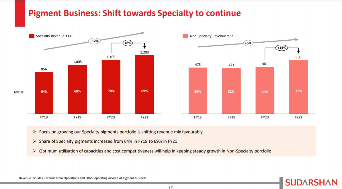 • Company has international sales team o board, while Sudarshan has R&D facility which differentiates co. from other Asian players, which lead to decrease in margin but has long term benefit.