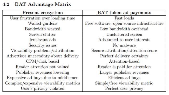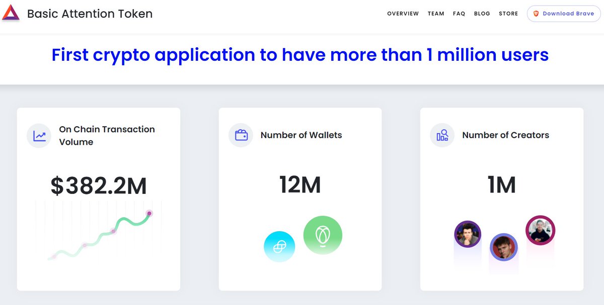 - L'utilité/projet : crypto native de l'explorateur @brave. Ce dernier est basé sur le blocage des publicités des sites internet. Si l'utilisateur le choisit, il les remplace par d'autres jugées plus pertinentes.
