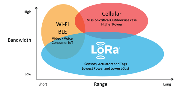 -يبلغ نطاق او مدى نقل البيانات حوالي ١٦ كم (بين الأجهزة والبوابة) ويمكن أن يصل إلى ابعد من ذلك حسب البيئة، حيث نحتاج الى جهاز واحد كبوابة للشبكة بحيث يكون متصلاً بالأجهزة الاخرى.