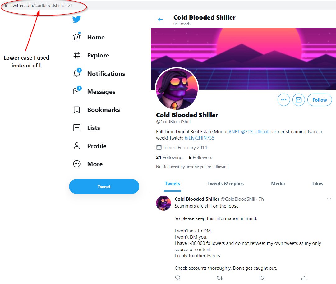 1. If you receive a DM from a larger account, verify the account. Do not assume it's the person in question, you can do this quickly by following the steps below.