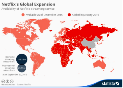 This was initially leading in DVD distribution service, then leading the industry in streaming, and eventually expanding globally