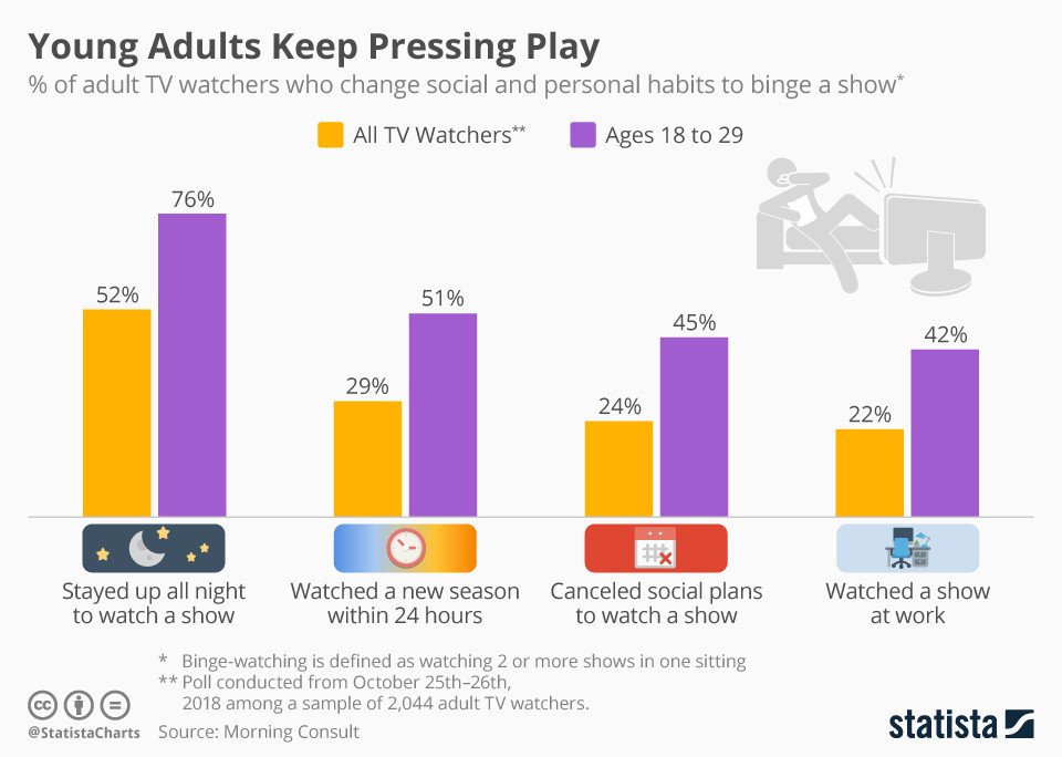 12) This makes the experience exciting, thrilling, and addicting. Just like scrolling through social media, we crave what’s to see next. The human brain produces domaine when we binge watch, which Netflix learned and uses to their advantage