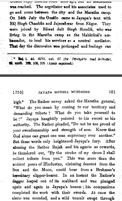 "Some of menial were dressed in maratha attire"- Do not thing marathas were fool to not see that and not suspect anything. If it was planned than Marwar army would have attacked the marathas to gain advantage of chaos but this didn't happened nor was tried.