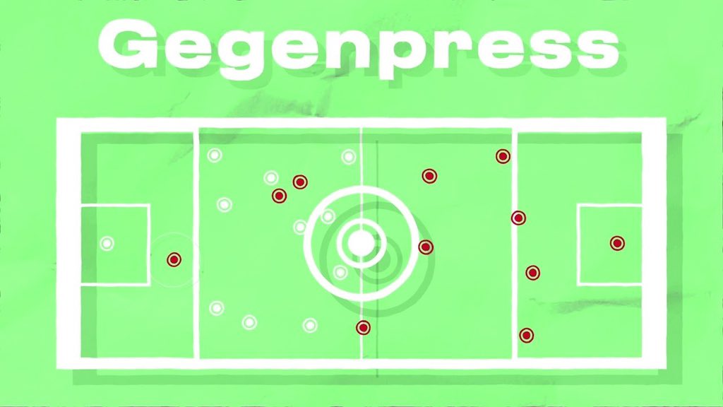 ضغط مستمر على حامل الكرة وإجبار الخصم على الخطأ ومن ثم الاستفادة من ذلك لبناء هجوم معاكس سريع وتأمين فرصة الحصول على هدف👇