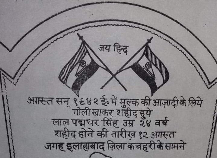Tribute to Hero of August Kranti Lal Padmadhar Singh Baghel who sacrificed his life while leading the "Allahabad Students Union" during Quit India Movement on 12 Aug 1942 at Allahabad.
