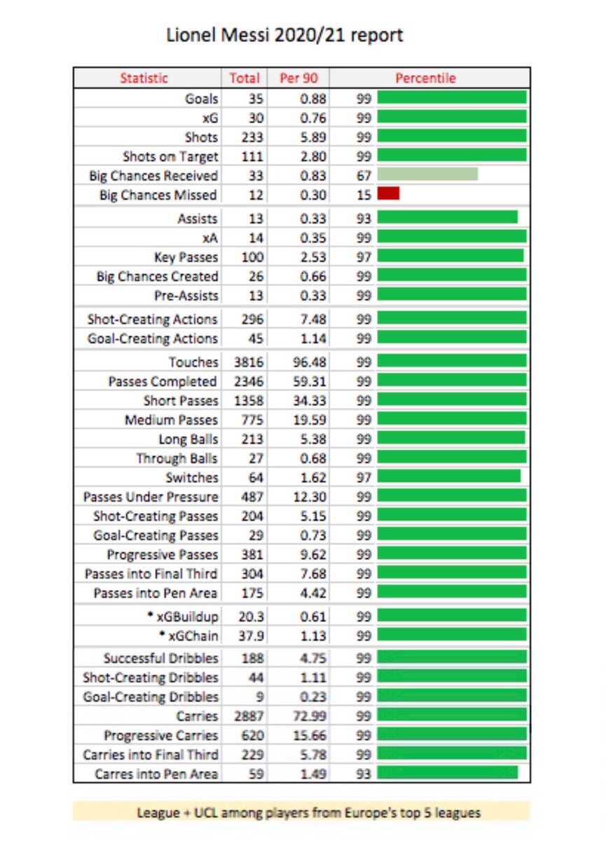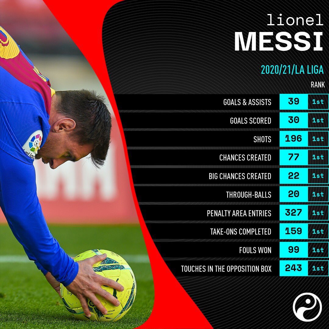 Messi has unbelievable 2021 stats at face value, and they don’t do his performances justice. No player has performed half as well or as consistently while meeting the criteria of winning trophies.