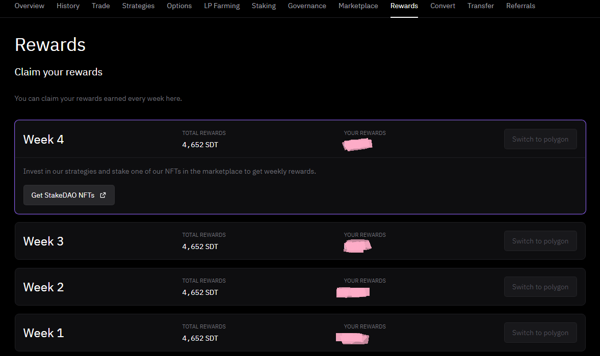 🔸L’onglet reward permet de recevoir des $SDT si vous stackez vos #NFT .