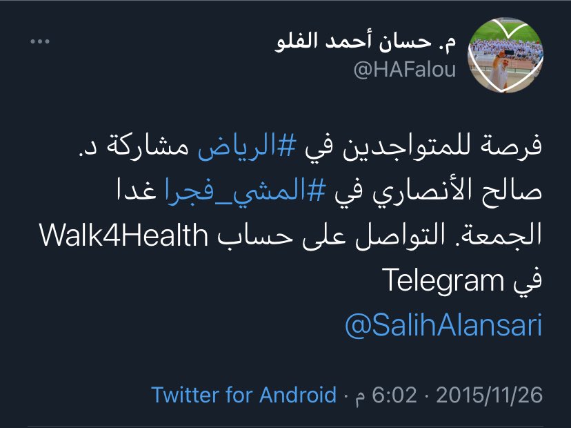 قبل ستة أعوام وفي مثل هذا اليوم كان يوم الجمعة 15 صفر 1437 بدء فيه اول نشاط ل #مشاة_الرياض بدعوة من @HAFalou للمشاركة في #المشي_فجرا مع @SalihAlansari في مضمار حديقة الملك عبدالله بحي الملز بالرياض.
