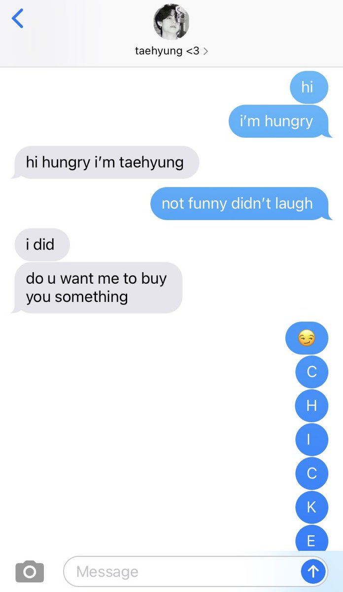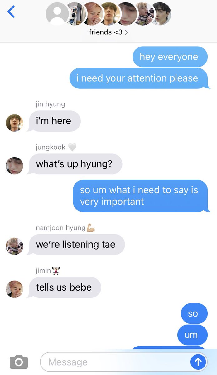 โoh my gosh hyung so today my teacher was being annoying, he kept asking us questions and would get mad if you didnโt understand it, like sir weโre not that smart here and then he said he was going to give us a quiz, iโm telling you itโs going to be something that