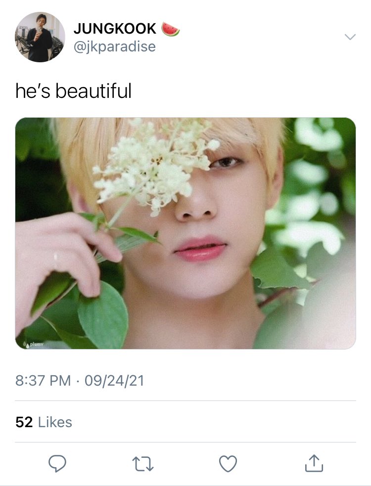 maybe he does like jungkook or maybe he just thinks that heโs pretty..?