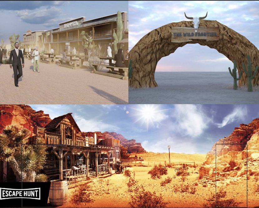 وايلد فرونتير: تضم المنطقة العديد من الفعاليات مثل فعالية غرفة الهروب وركوب الثيران والصالون ورماة الكاوبوي