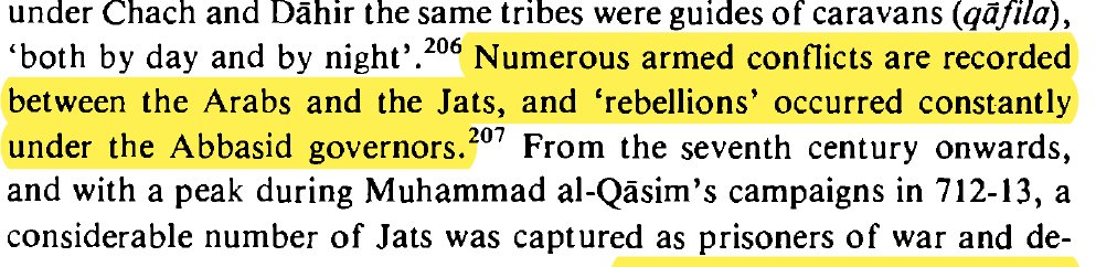 The Arabs branded the Jats, Sammas and other similar tribes of Sindh as "highway robbers, thieves or pirates" Numerous armed conflicts occured between Arabs and Jats, if the Jats lost they would be deported as slaves to Iraq.