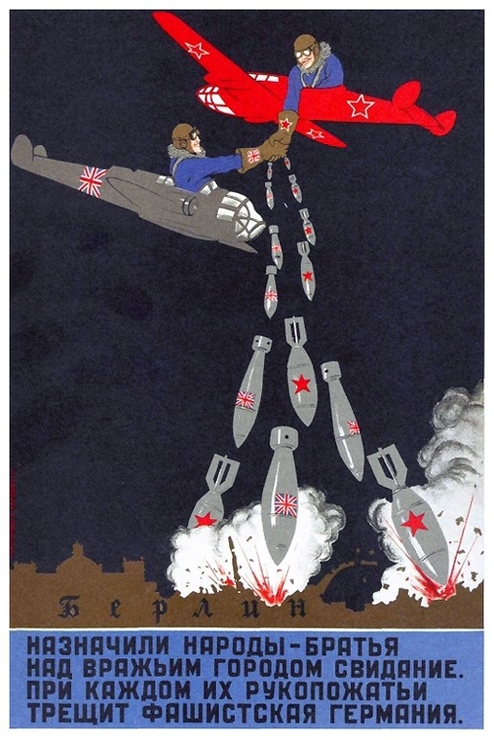 The @AWMemorial website gives an interesting backstory to this poster: Stalin apparently presented the newsprint to Lord Beaverbrook, Minister of Supply, during the 1941 Moscow Conference. Beaverbrook presumably then urged the British poster's production awm.gov.au