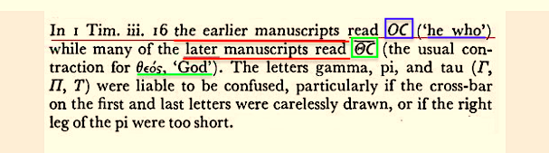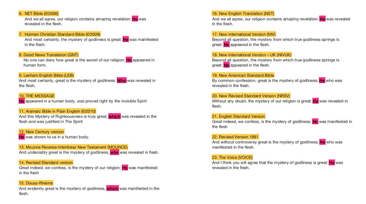 - The earliest manuscripts do not read God (Theos) but he, who or which.