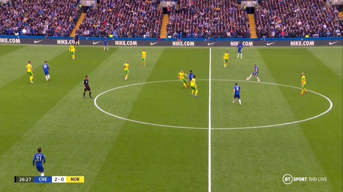 Here against Norwich, Chilwell did it a whole couple of times also. Jorginho and Silva tried to pick him out,