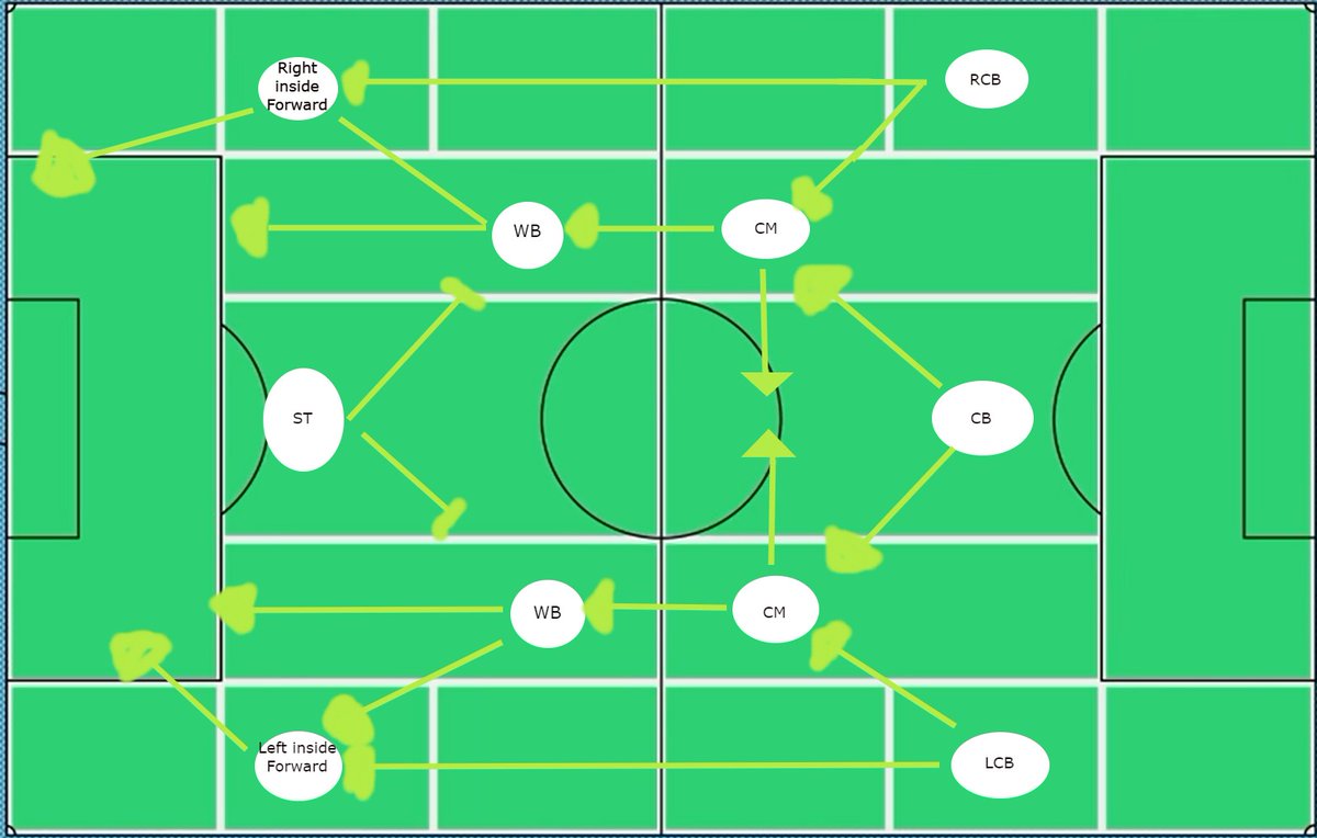 But the beauty of this is it's not totally static. There are constant rotations between them. We've seen lots of examples where The Wing back can also stay wide for the Inside forward to come inside, and vice versa.