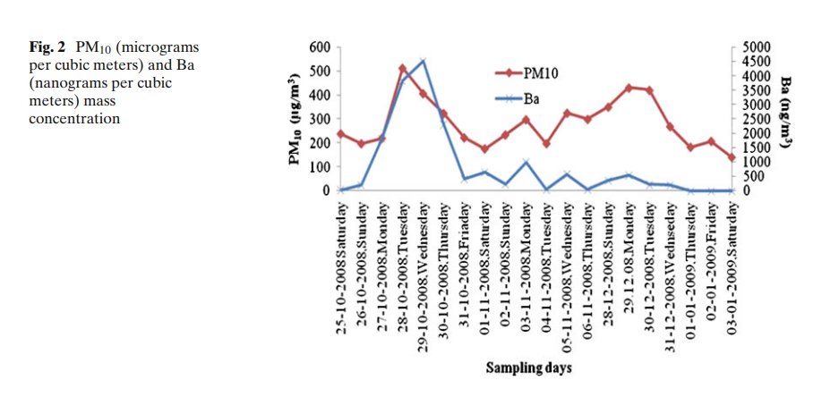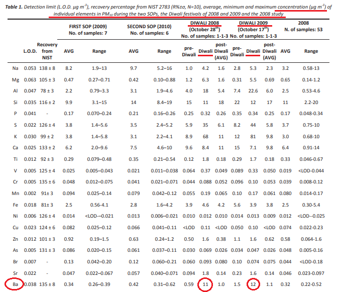 This is a third paper which measured particulate matter emissions during Diwali, this time in Delhi too. (researchgate.net) But, they don't measure barium in paper.