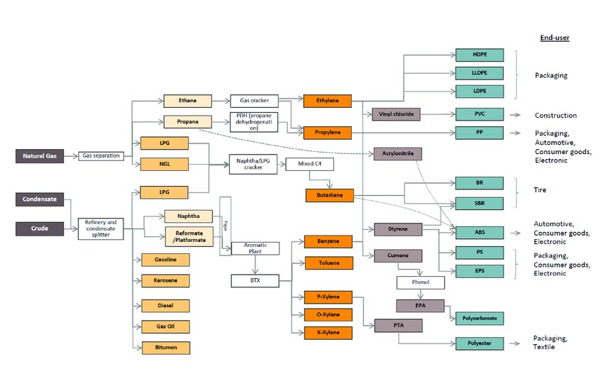 Petrochem value chain with uses