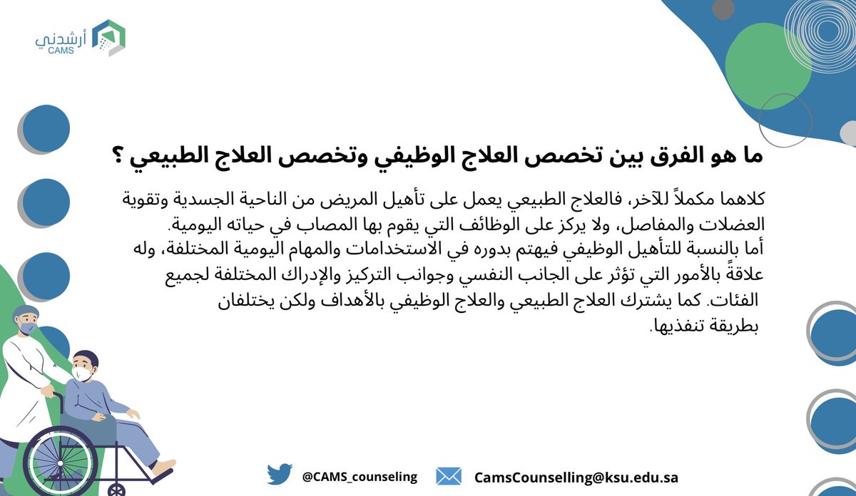 وكجزء من اسبوع #العلاج_الوظيفي قابلنا طلاب وطالبات تخصص العلاج الوظيفي من مختلف المستويات للإجابة عن الاسئلة الشائعة والمختلفة: 👨⚕️👩⚕️
