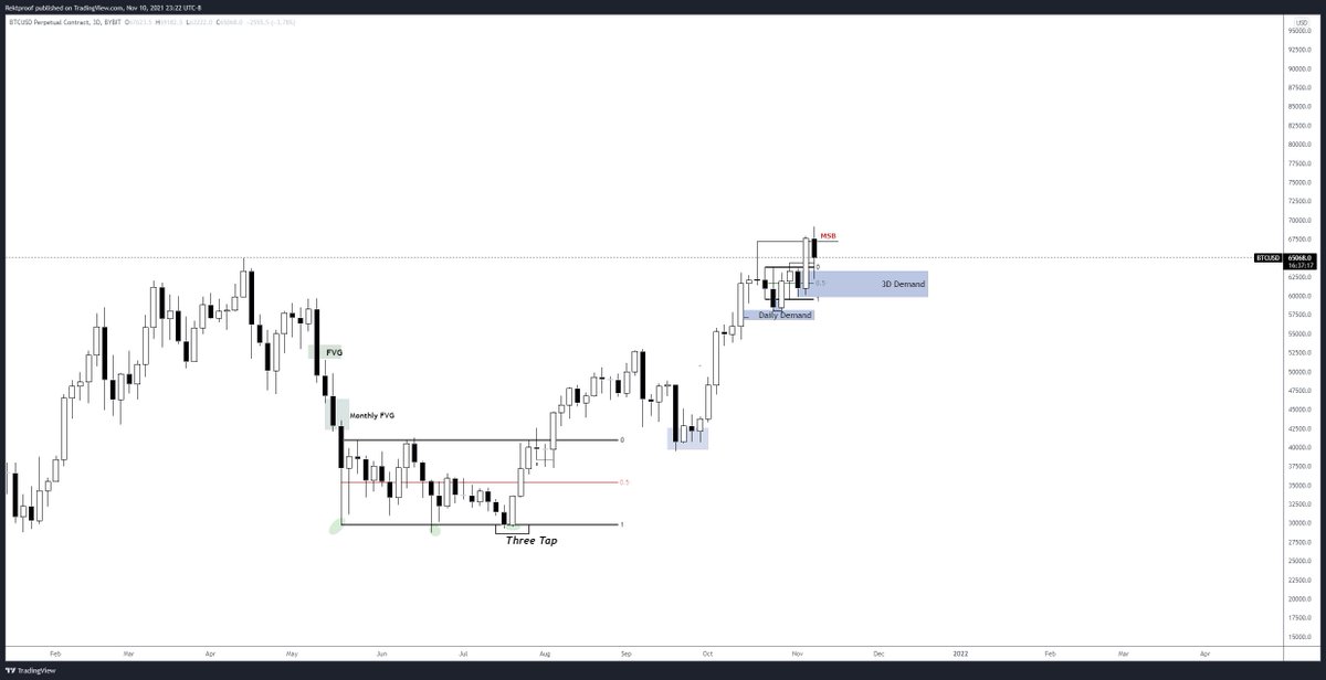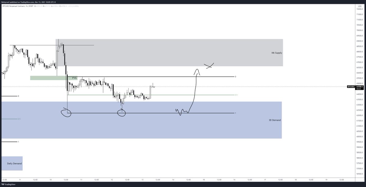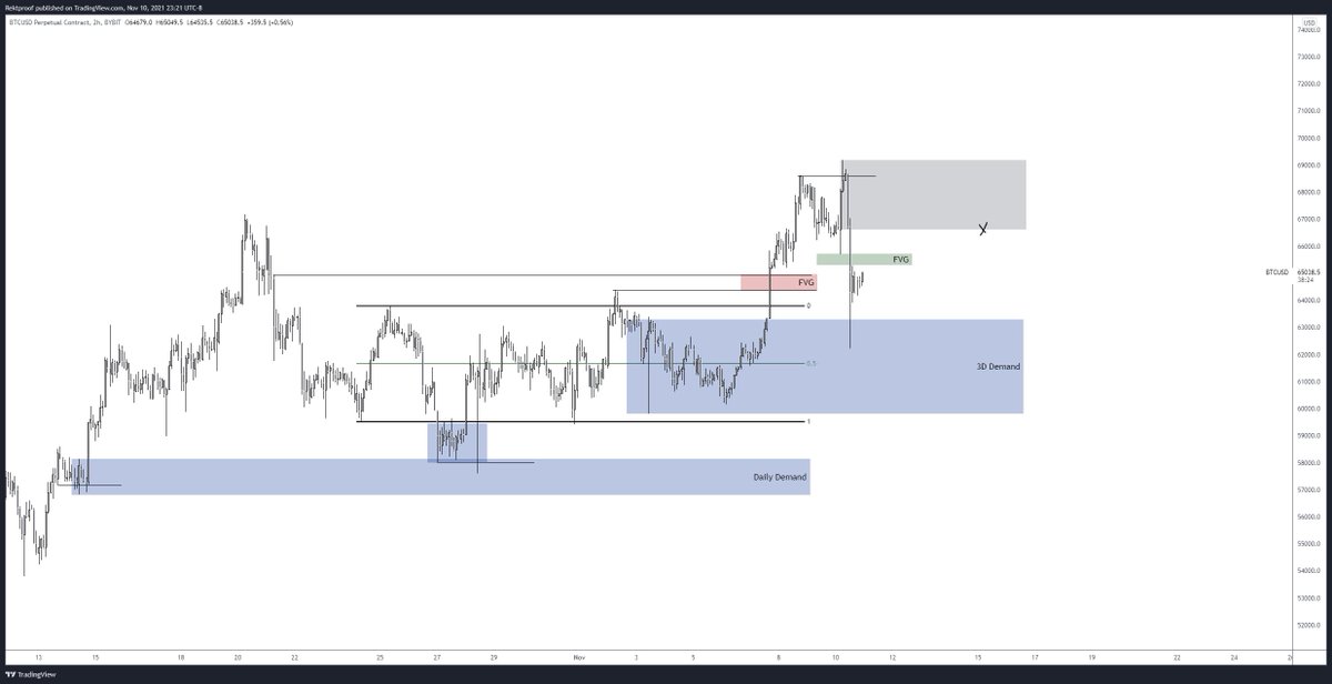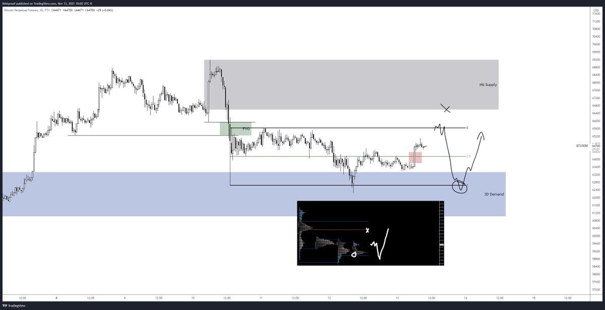 Price coming off the 3D Demand with a slight FVG to fill leading into the 66ks+