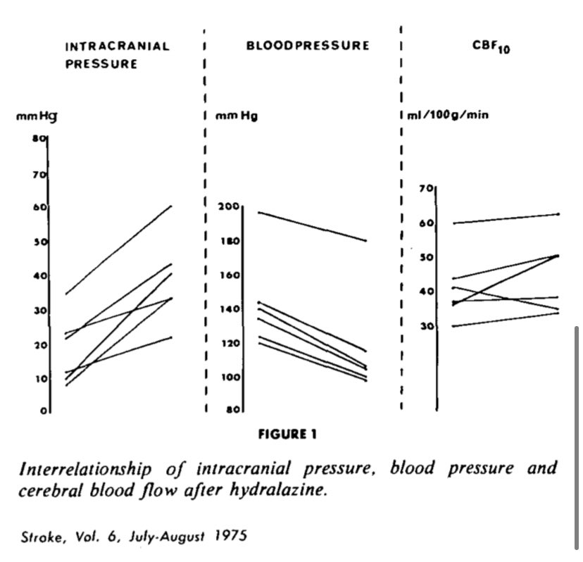 🚨 alarming to note, authors found an ~ 20% reduction in SBP after a single dose of 12-18 mg of hydralazine that lead to a 110% ⬆️ in ICP ⚠️