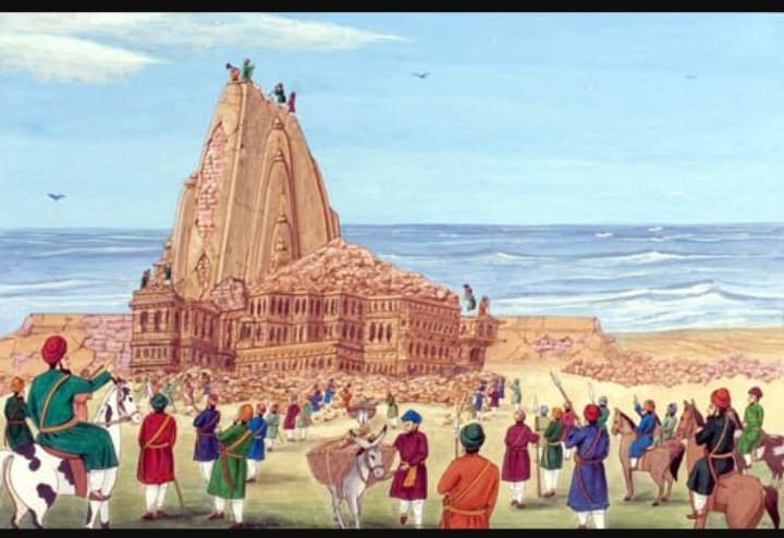 Then, amidst loud and vulgar clamour, they began to apply force from both the sides to uproot the massive idol by means of wooden beams and iron crowbars.