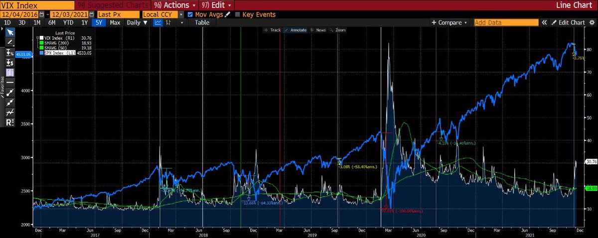 Vi em um post que a MMA200 do VIX só cruzou a MMA50 do VIX poucas vezes nos últimos X anos.