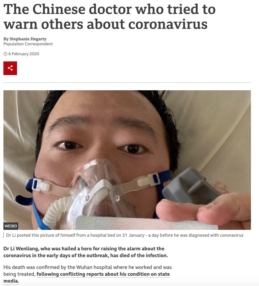 4. What was most unusual about Li Wenliang was that Li was apparently at deathโs door whilst seemingly in perfectly good health.