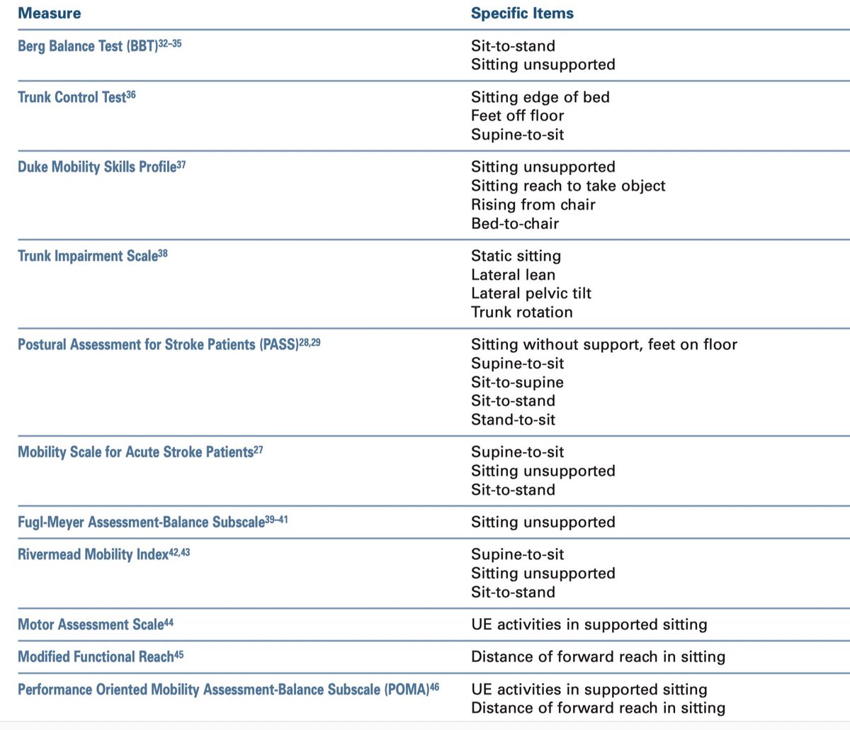 بالنسبة للـoutcomes measure لتقييم Sitting ability كثيرة ومتعدده ومختلفة
