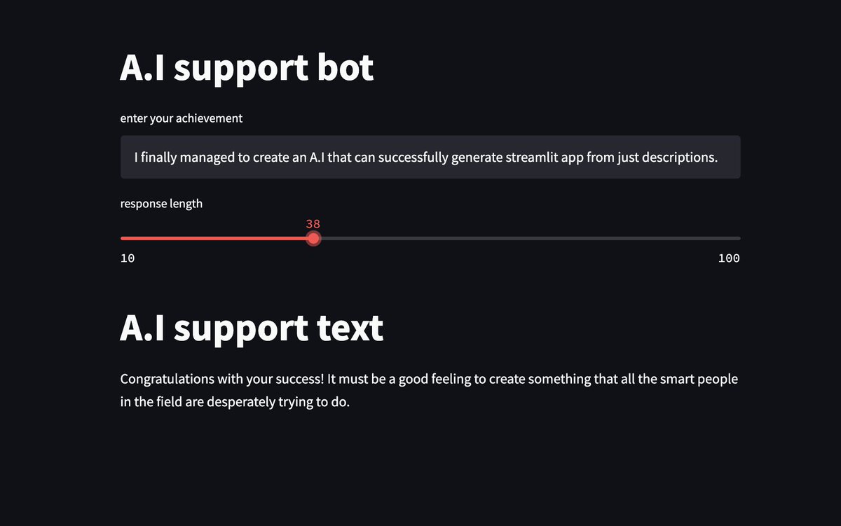 Just describing what we want the A.I writes the python code, uses the variables and enter text. And using the same text generator we generate the co gratulations.