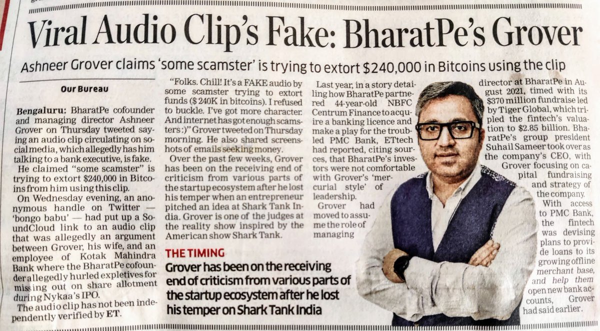 It seems the spat may have been over IPO financing that Grover was expecting - Rs 500 crores that he and his wife wanted to invest.