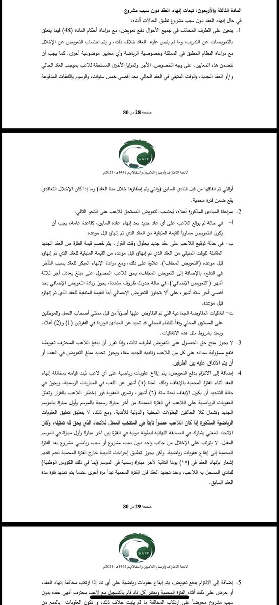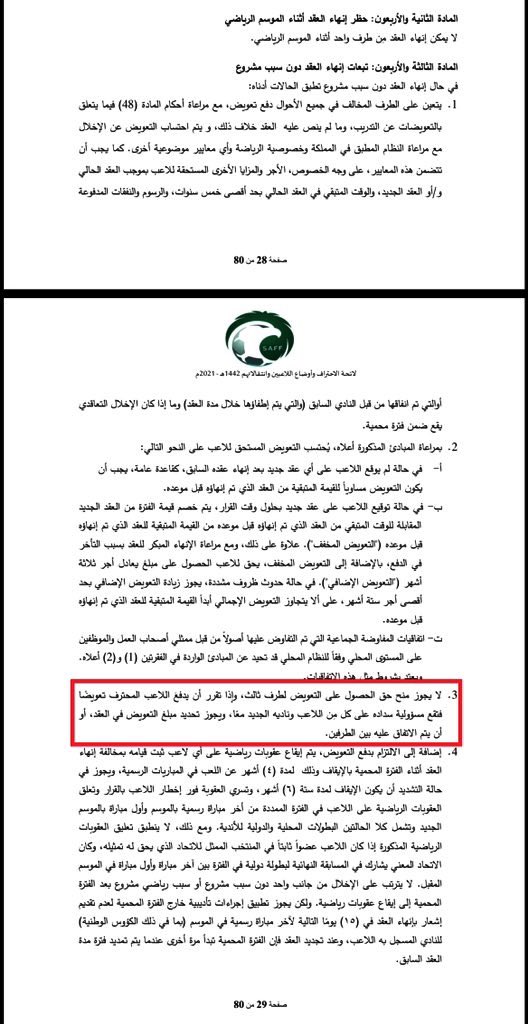 #للتوضيح #كنو 2️⃣ - وبالتالي يترتب على ذلك الانهاء الغير مشروع من قبل #كنو عقوبات رياضية وتعويض مالي حسب ماهو متفق عليه في عقده مع #النصر - وهنا تقع العقوبات الرياضية على اللاعب بالايقاف لمدة تتراوح مابين ٤-٦ اشهر - وعقوبات على ناديه الجديد بمنع من التسجيل لفترتين
