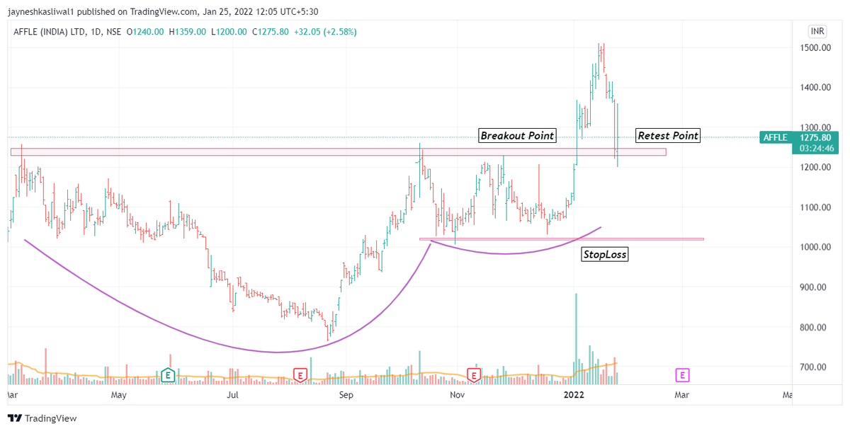 2. The best place to enter in breakout stocks is not at the top where most retailers get trapped but again at retest.