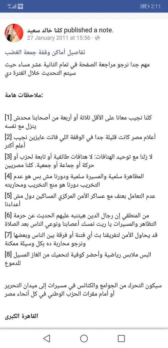 ٢٧ يناير ٢٠١١ نزلت خريطة جمعة الغضب