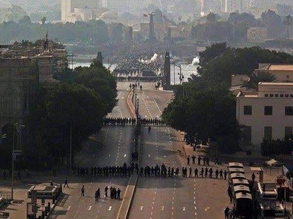بداية الحركة الاخيرة والمد الاخير علي كوبري قصر النيل باتجه ميدان التحرير