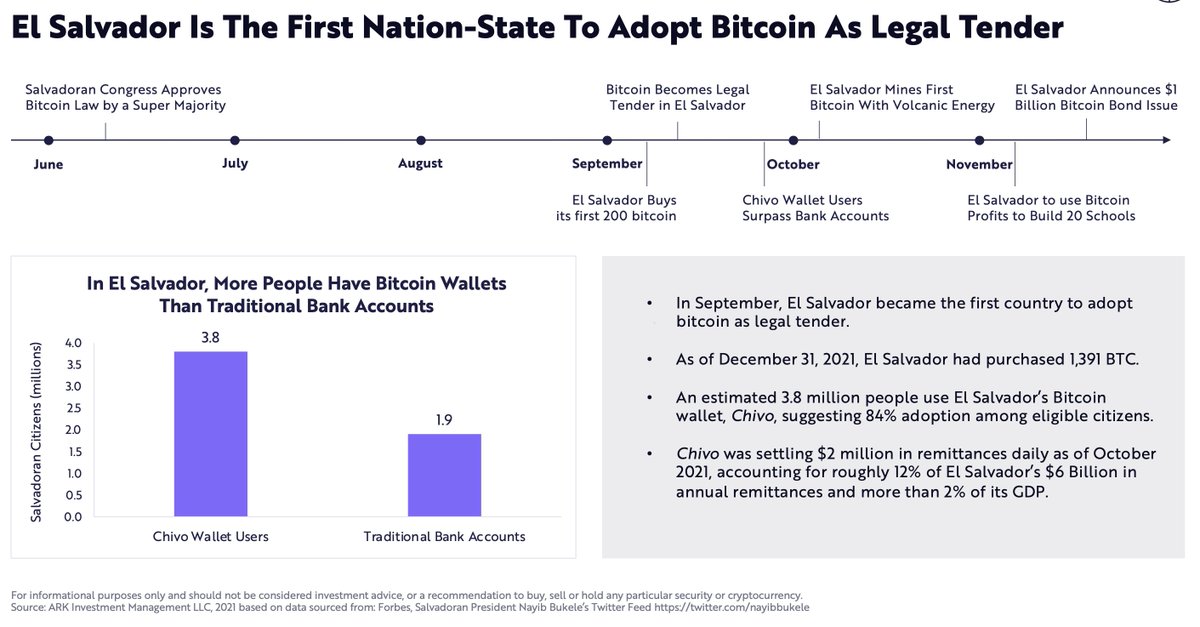 El Salvador became the first nation state to adopt bitcoin. I expect other countries to follow El Salvador's lead coming into 2022.
