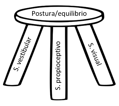Los pacientes con alteración propioceptiva conservan la postura con los ojos abiertos, usándolos para compensar; pero al cerrar los ojos el tripié “se queda solo con una pata” (la vestibular) y la postura se pierde.
