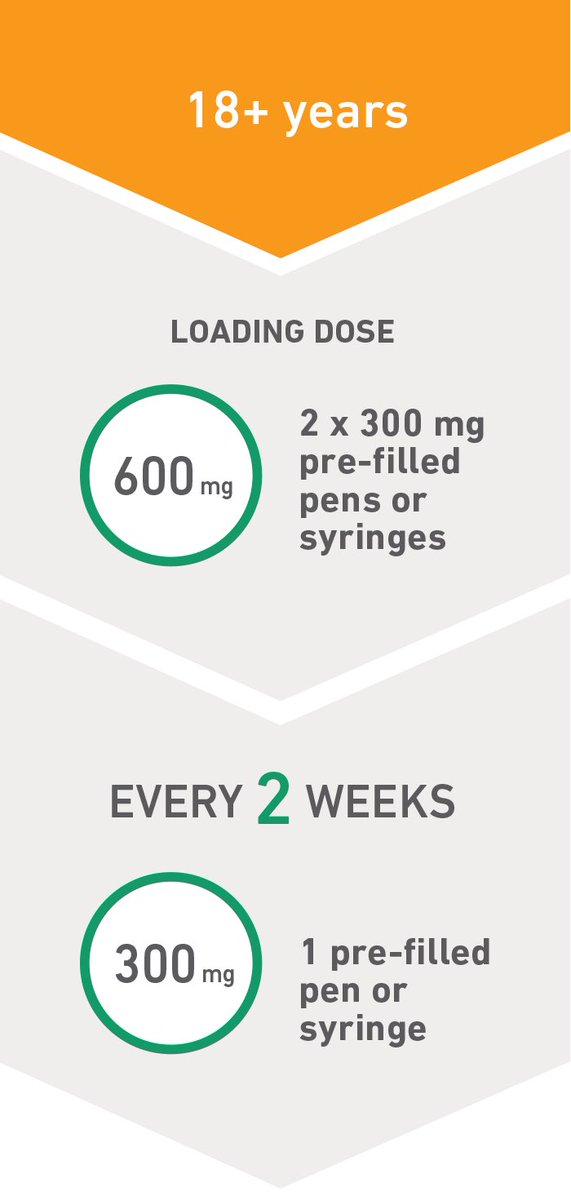 علاج دوبيكسنت (دوبيلوماب) عبارة عن حقن تعطى مرة كل بضعة أسابيع، تعطل عمل بروتينات تقود عملية المرض، لا تحتاج لعمل فحوصات لبدء العلاج. ممكن ان تعطى للأطفال