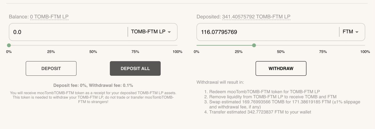 COMPLETE GUIDE to the TOMB/FTM and TSHARES/FTM pools on @beefyfinance using @tombfinance. Talked about these in a recent video on YT and in this short thread I'll break down exactly how to withdraw and deposit to these farmsπ§΅