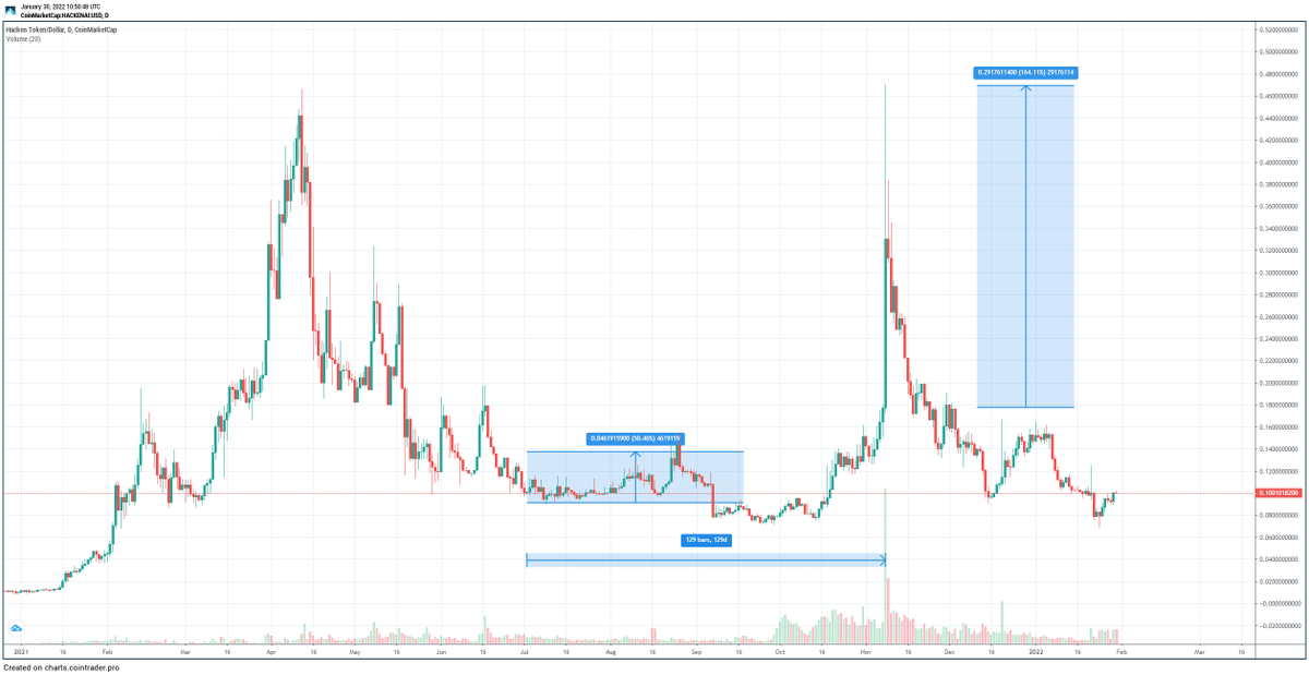 Un exemple qui me vient immédiatement en tête est le #HAI, que je vous avais partagé cet été. J'ai plus la date exacte de mon entrée, donc partons du 1er Juillet jusqu'au 8 Novembre. J'ai gardé ce token environ 129 jours, soit environ 4 mois.