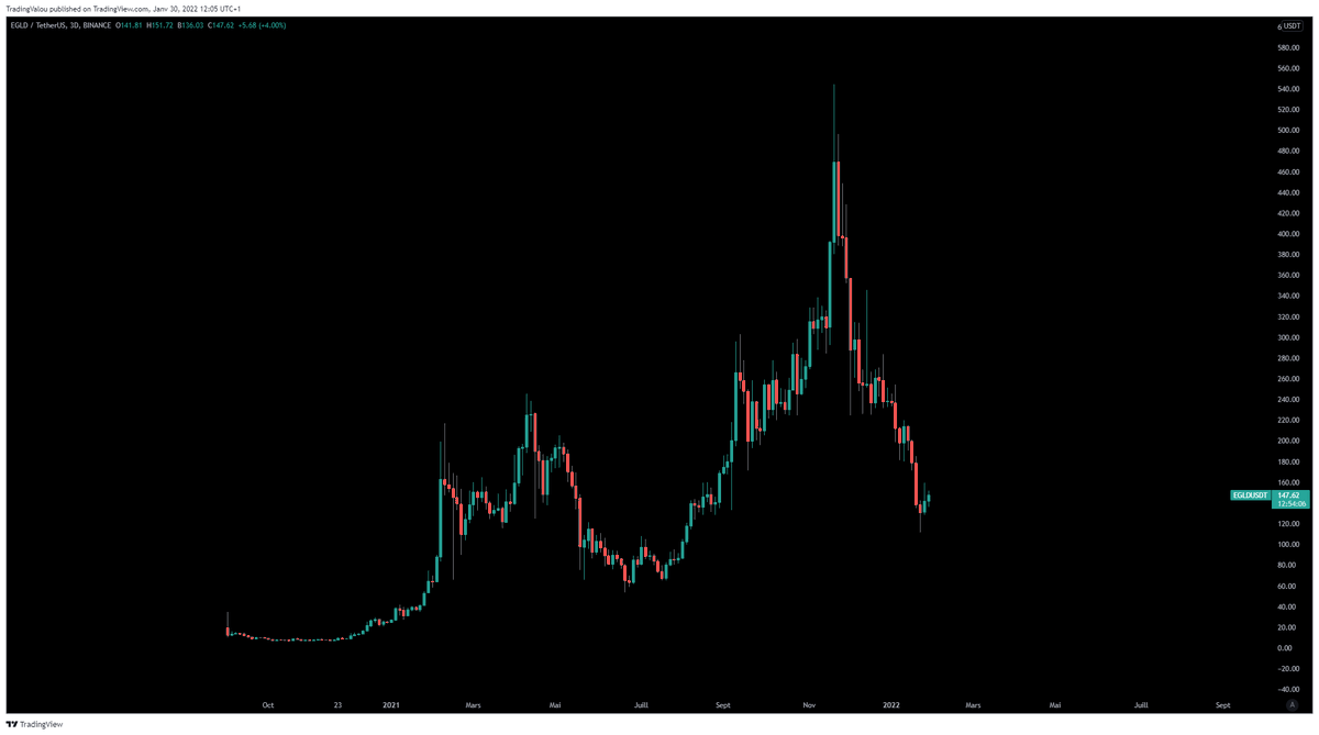 J'ai d'ailleurs bien fait de m'écouter, le prix ne cessant de dump depuis fin Novembre sur #EGLD. Maintenant qu'on a rincé les gogoles et vidé le train, y'a moyen qu'on reparte tranquillement, les 50% de mon bag restant n'attendant que ça.