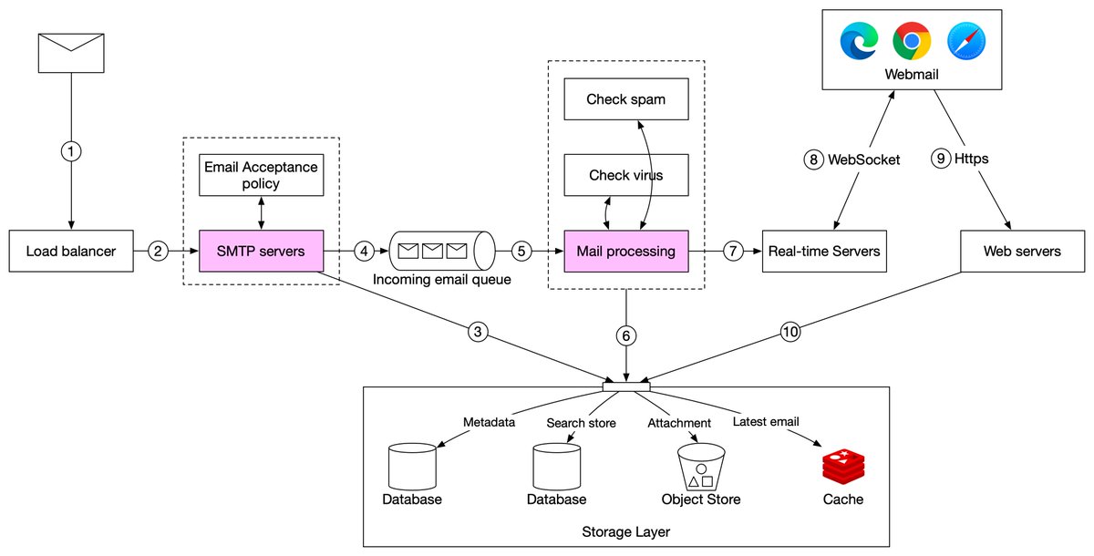 1. Incoming emails arrive at the SMTP load balancer. #softwaredevelopment #cloud 1/7