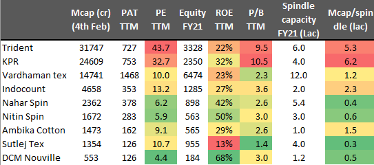 Textile is India's oldest manufacturing sector. World's 2nd largest producer, 5th exporter and 2nd domestic employer - all these cos world's cheapest raw cotton availability here. So a fragmented market with many small players as barrier to entry becomes low.