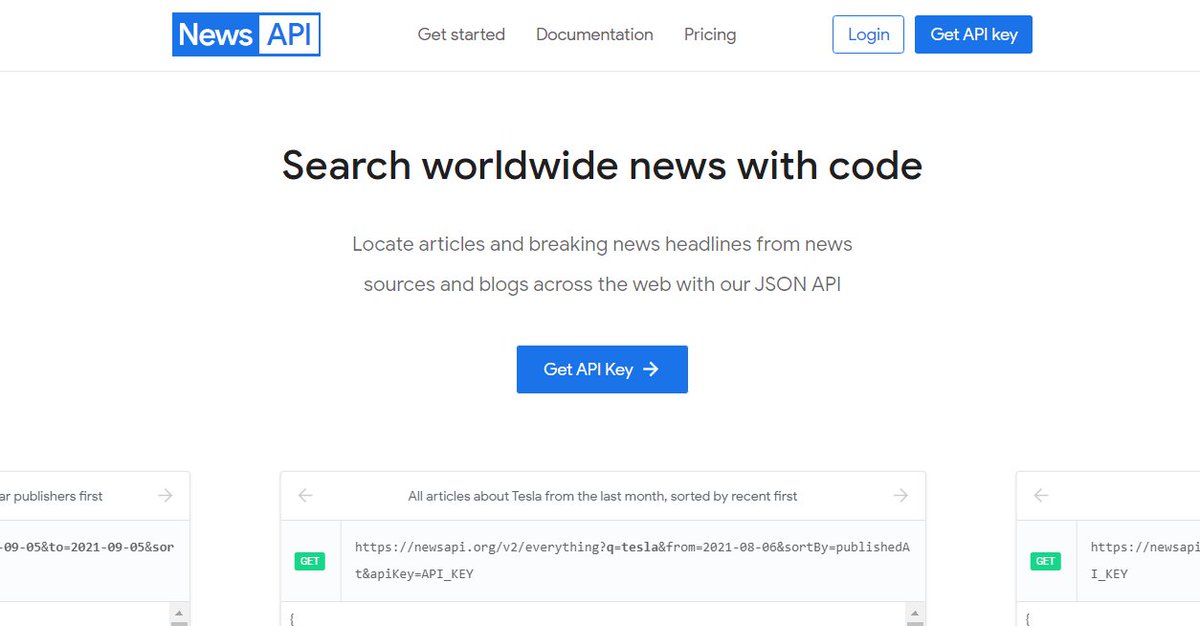 Rest API that returns news articles published by over 80,000 worldwide sources.