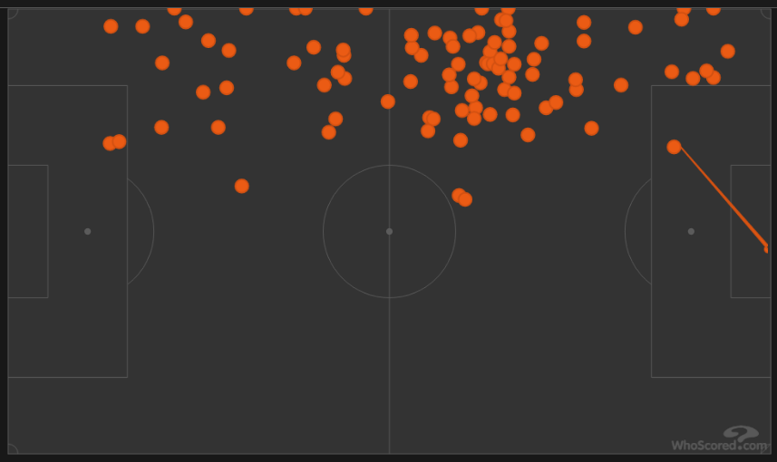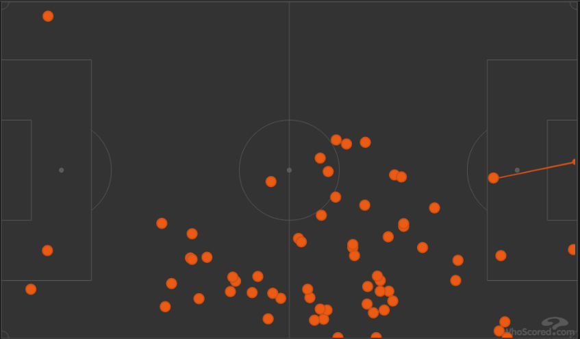 There were rare moments when Alves pushed up from the left, but when he did, he combined well with his fellow teammates to carve out a cross & opportunities to score.