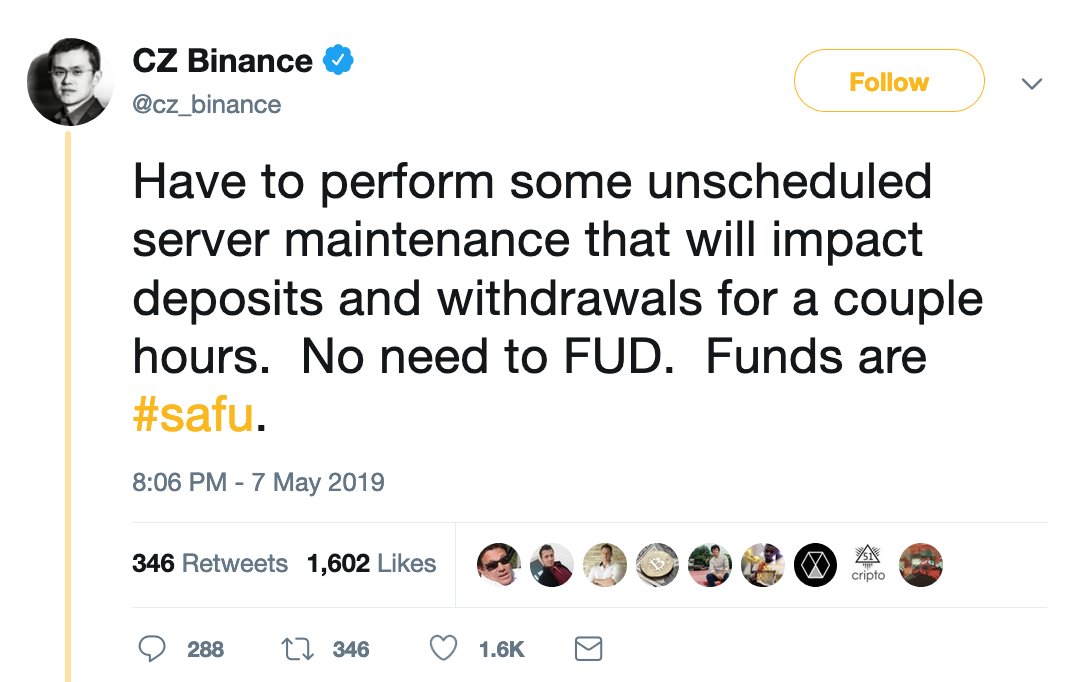 🔸Le 7 mai 2019, #Binance a révélé qu'elle avait été victime d'un hack de 7 000 $BTC d'une valeur de 40M $.