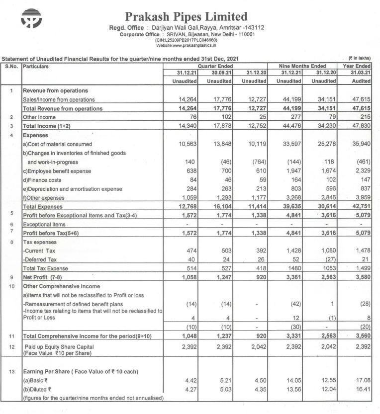 Flexible packaging- In the current quarter, the 4th printing line is being commissioned, thereby completing the capacity