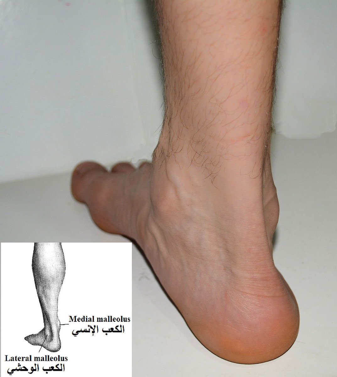 الم على طول القاصي 6 سم من الحافة الخلفية طرف الكعب الإنسي ، أو الكعب الوحشي او