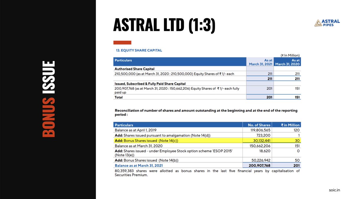 Astral had announced the issuance of bonus in ratio of 1:3 i.e., 1 bonus share for every 3 existing equity shares. The record date for the same is March 18, 2021. Consequently, share price has adjusted to ₹1715 from ₹2455.